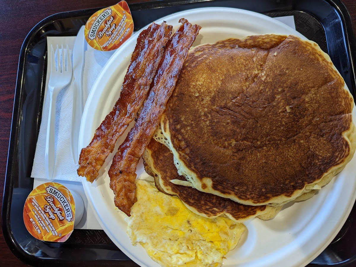 First time coming here. Was in the area for a Dr.’s appt and thought I’d get some breakfast since I was early. So glad I did!! Got the pancake platter with an egg and bacon. Pancakes were fluffy and delicious. Bacon was crispy and the egg was on point. For $7.99 you can’t beat it today. I added a side of white toast and a drink and it was only $12. The place was very clean and the staff was friendly. Great experience. Definitely recommend!